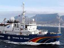 It's one of the Greenpeace ships. Greenpeace. Sounds familiar, doesn't it? It's an international organization taking steps to defend our oceans (including the wildlife in it). You might have watched its ad/saw its logo while watching MTV, they're endorsing the organization.